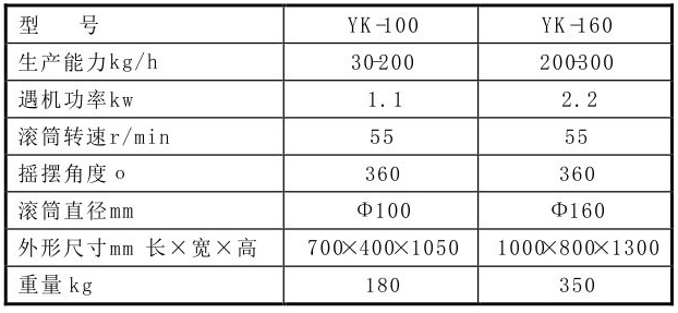 主要用途: 本機(jī)廣泛適用于制藥、化工、食品等行業(yè),將潮濕的粉末物料制成顆粒,亦可粉碎塊狀的干物料。 工作原理: 通過機(jī)械傳動(dòng)使?jié)L筒往復(fù)擺動(dòng),將物料從篩網(wǎng)中擠出制成顆粒或粉碎制粒。 技術(shù)參數(shù):