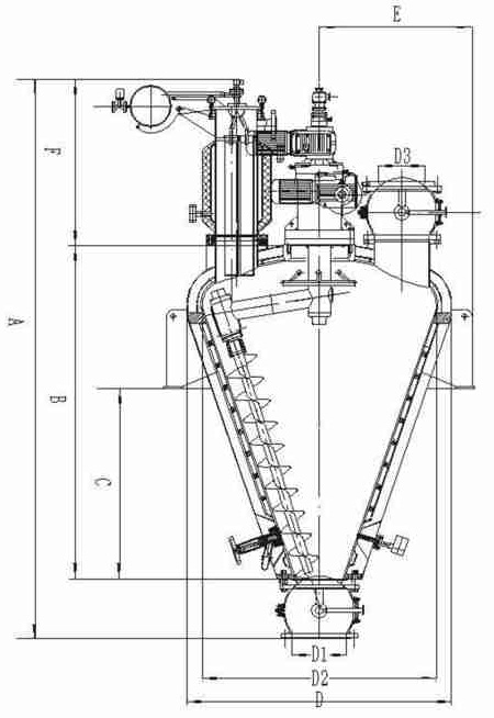 單錐螺旋真空干燥機工作過程為批次操作,濕物料進入料倉后,利用夾套、攪拌加熱進行干燥。通過選擇合適的單錐真空干燥機(工作容積)可以達到需求的處理量范圍,采用上驅動式結構的攪拌器與攪拌螺桿可分段拆裝,由于安裝空間充裕,適宜于GMP車間使用和進行檢修維護,同時單錐螺旋真空干燥機具有的高效干燥混合能力是雙錐真空干燥機的3-4倍,物料裝填率在10%-100%可正常工作,懸臂螺桿攬拌可以達到較高的混合精度,在大批物料中添加很少量物料這樣的苛刻條件下也可以在干燥機內混合均勻,由與其與眾不同的溫和攪拌的特性,即使對干燥處理敏感的產品,也不會遭損壞,所需的驅動功率卻相對很低。本干燥機的高真空設計對干燥溫度敏感的產目來說其優勢十分明顯,并具有良好的熱傳導能力、和快速干燥,同時、又兼具低耗能的特點。與干燥機直接相連的過濾器能夠將塵粒保留在加工區域內,本機采用充氣密封半球閥,卸料徹底、便捷,出色的真空、耐壓密封性能, 無死角、易清潔設計,性能穩定、使用壽命長,從而保證您能夠毫天損失地繼續加工產品。這樣一種多用途干燥/混合設備是您解決生產需求的理想裝備。 技術參數: